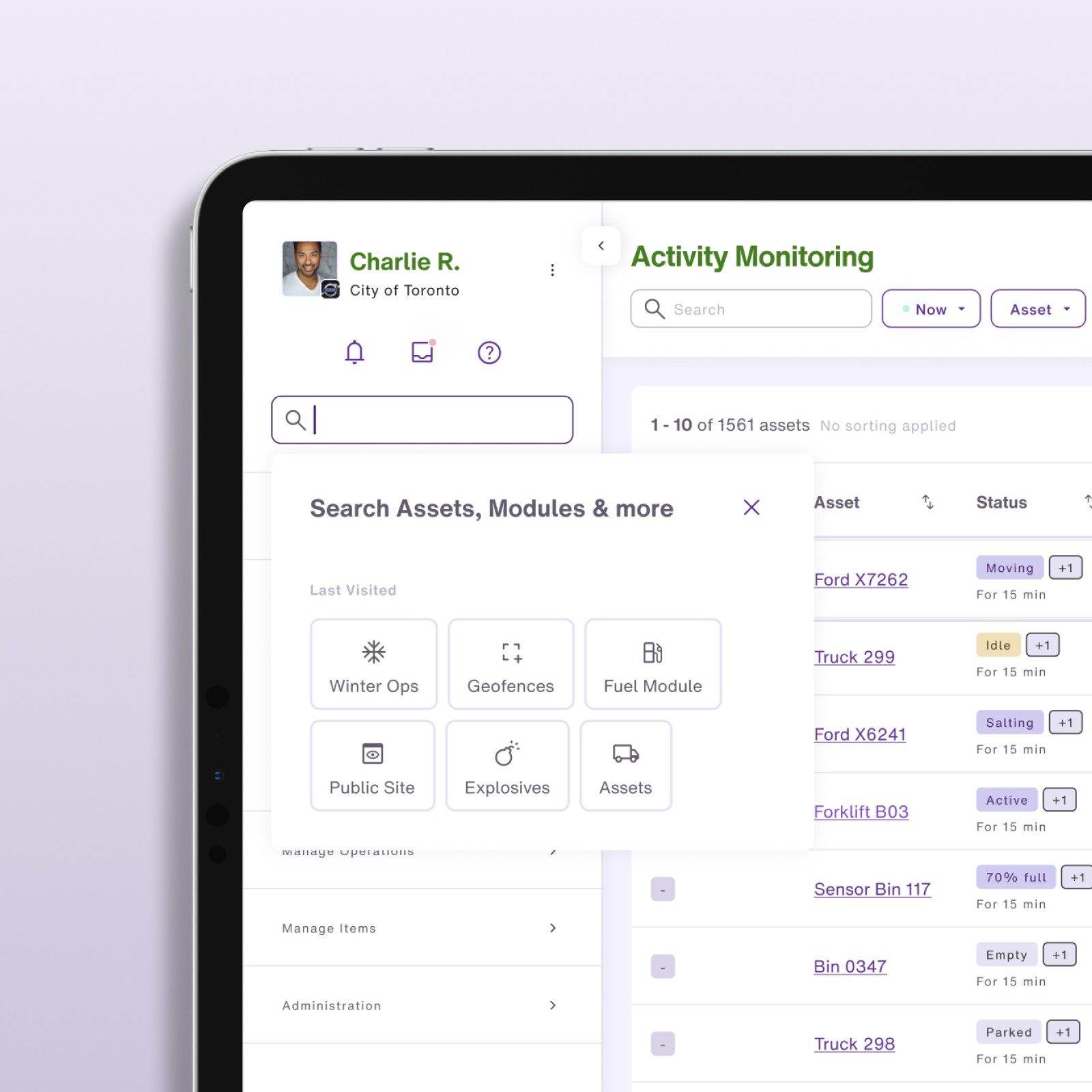 Fleet management software is used by municipalities and private companies to track and manage thousands of assets (e.g. seasonal service vehicles, construction equipment, delivery trucks, etc.). These platforms offer role-based access for dozens of user types (e.g. fleet managers, drivers, workers, etc.) and help them have visibility across various operations, comply with regulations, optimize their fleet and more.